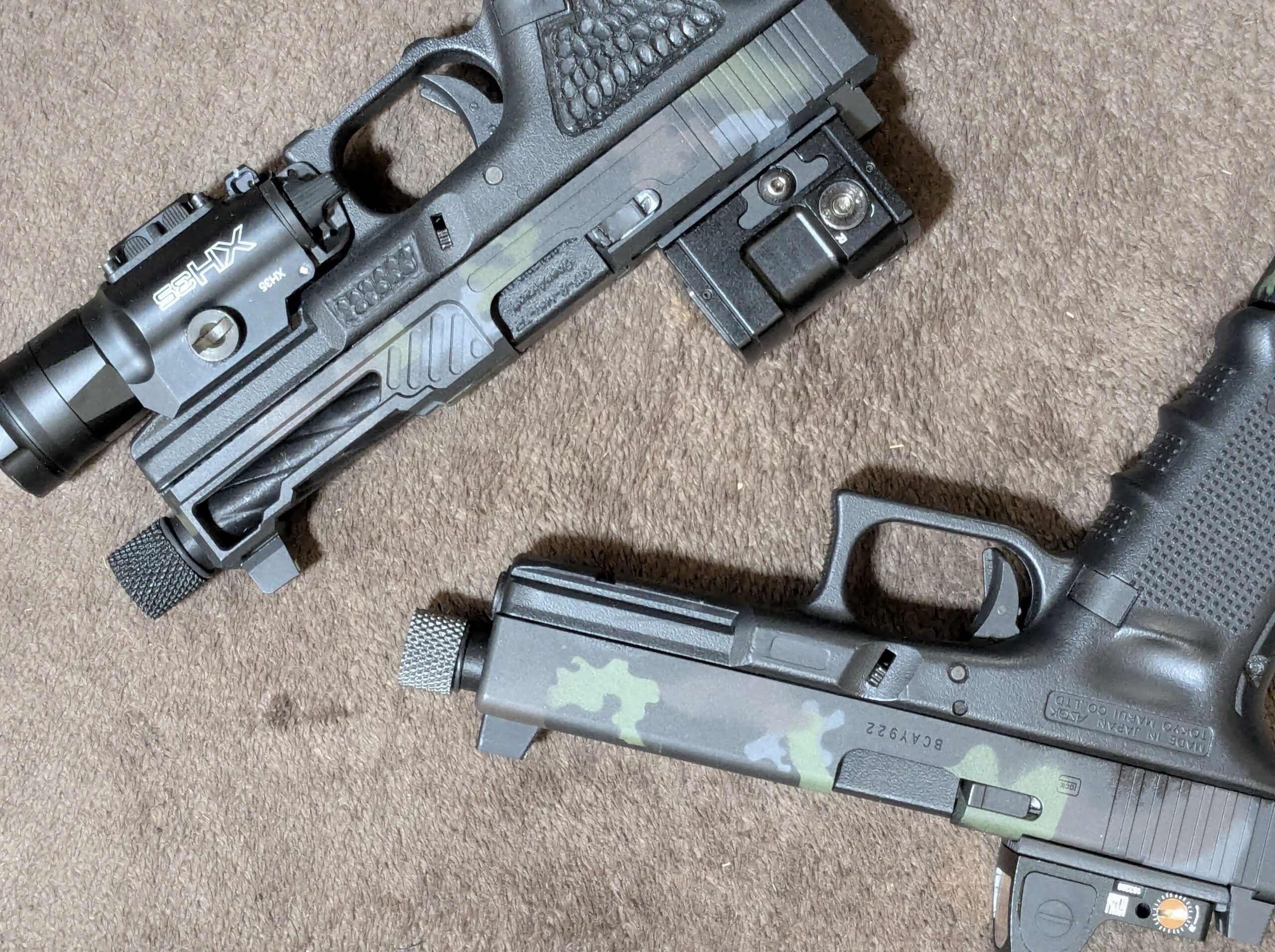 ハンドガンにも迷彩塗装をやってみたいと思っていたのですが、失敗した時のことを考えると中々ふみきれませんでしたが、何とかなるかと挑戦してみることにしました。